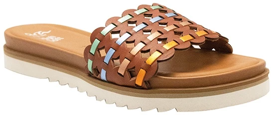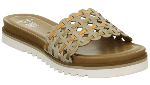 Slide sandal with beautiful woven leather uppers. HighSoft Technology mirrors the comfort of a trainer but within a dress footbed.