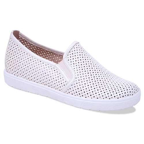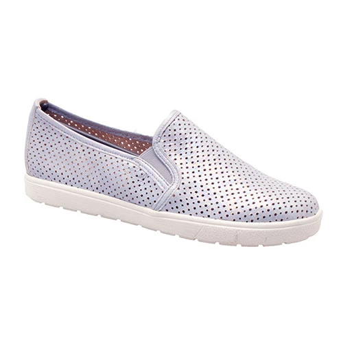 Mollie is a casual slip on that benefits from leather uppers with pretty punch detailing. It has discreet elastic side panels which provide some adjustment and allow an easy on and off fit. Comfortable and lightweight rubber outsole.