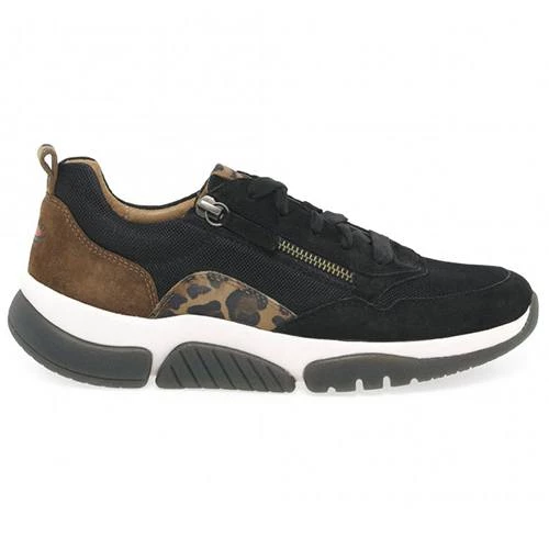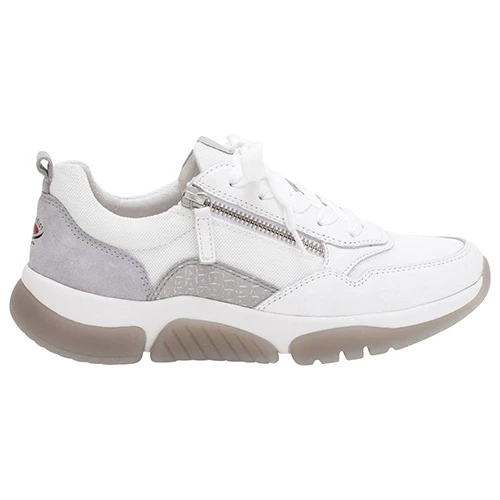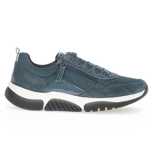 Contemporary casual trainer with premium leather and suede uppers with contrast heel and side detail. Laces offer adjustment and a zip provides easy access.