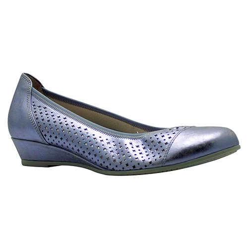 Crete is ballerina style court shoe with a comfortable low wedge heel. It benefits from soft leather uppers with beautiful punch detailing and smooth leather linings. Lightweight rubber outsole.