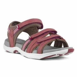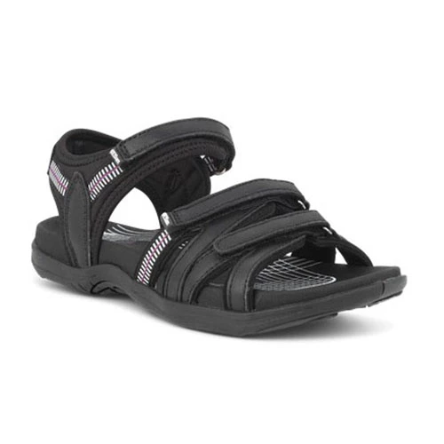 Walking sandal with durable leather uppers and a comfortable textile lining.