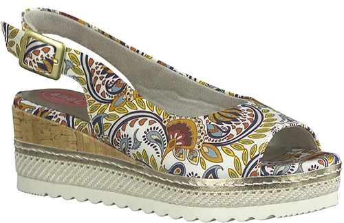 Contemporary, platform wedge sling back sandal with soft touch textile uppers. Supportive ankle strap with a buckle fastening provides adjustment of fit. Microfibre covered cushioned footbed with built in Jana Soft for additional comfort.