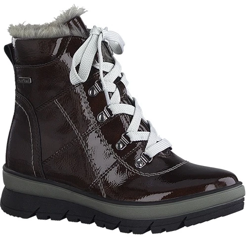 Super soft patent cold weather boot, with a warming fleece lining and waterproof membrane.