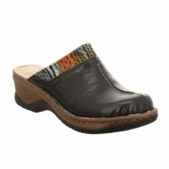 Soft leather upper with coloured woolen band and a warm cushioned footbed keep the foot warm and secure.