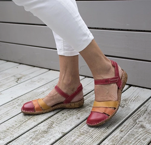 The fresh and delicious close toe sandal, with soft supple leathers, a delicate handstiched finish and cute floral sole unit.