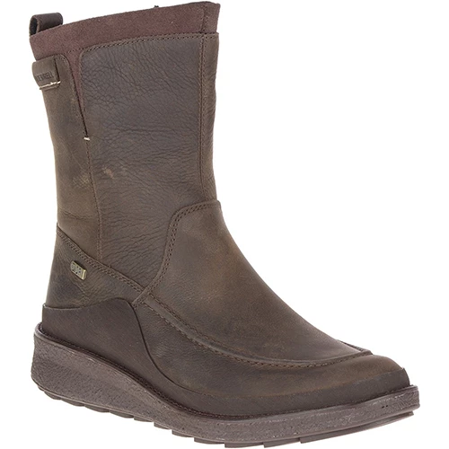 Merrell Tremblant is a casual lifestyle boot. It benefits from full grain, waterproof leather uppers. It has an inside zip to provide an easy on and off fit. Kinetic fit base with a removable contoured insole for flexible support. Merrell M Select Grip outsole provides durable traction.