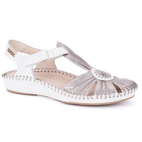 Elegant sandal with soft leather uppers and smooth leather linings. Easy to fasten hook and loop closures provides adjustment. Durable rubber outsole.