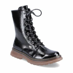 Chunky on-trend biker boot, with super soft patent uppers and a waterproof lining.