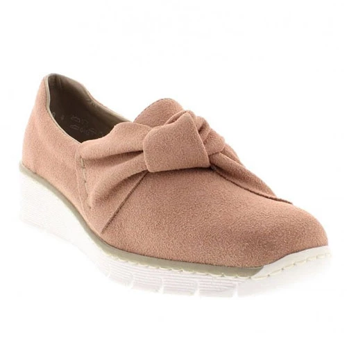 Casual slip on with soft suede uppers and elastic goring for an easy on fit. Comfortable and lightweight, low wedge outsole.