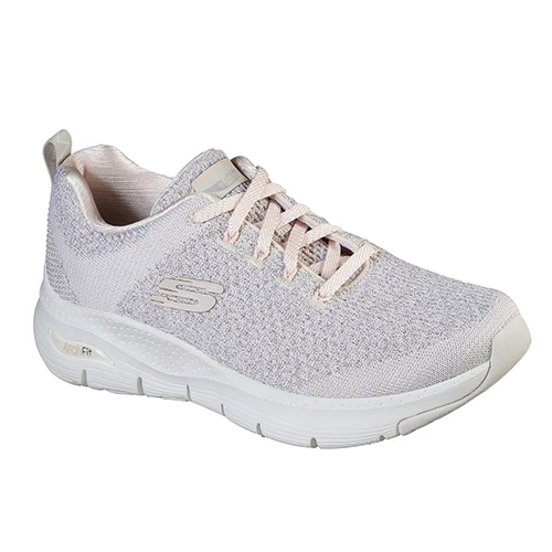 Supportive trainer with an engineered knit mesh fabric upper. Arch Fit insole system with podiatrist certified arch support. Removable comfort insole designed for walking comfort. Resilient cushioning system promotes better foot guidance. Flexible traction outsole.
