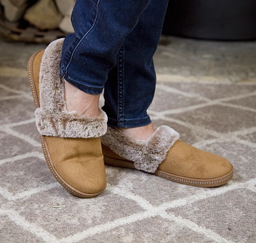 Campfire – Team Toasty shoe. Soft suede-textured microfiber fabric upper in a slip on casual comfort slipper with faux fur lining and Memory Foam footbed.