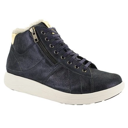This super warm high top trainer will keep your feet supported and cosy in the colder months, with premium leather uppers and super soft microfibre lining and a faux fur collar. This sleek pair also offers a newly designed rubber sole with excellent grip.
