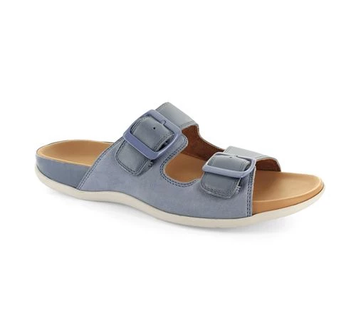 A contemporary take on the classic two-strap slide. Perfectly versatile, offering a fully customised and secure fit with two adjustable buckle straps. Crafted from high quality, supple natural and nubuck leathers. Supportive footbed technology makes them addictively comfy.