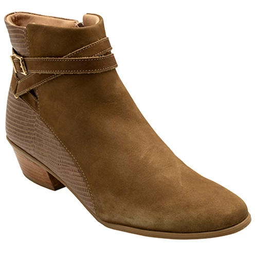These stylish ankle boots come in soft leather or suede and feature an on-trend lizard print heel. The low heel adds height whilst keeping you comfortable throughout the day, and the concealed inside zip provides easy access. Available in three colours, choose a classic black, eye catching khaki, or versatile brown.