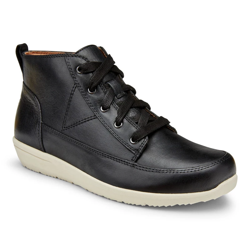 Lightweight casual boot with full grain leather uppers. Zip fastening provides easy access and laces offer adjustment. Vionic biomechanical footbed is contoured to provide support and natural alignment. Lightweight rubber outsole.