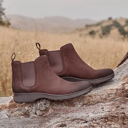 The Vionic Evergreen ankle boot comes in a premium leather or Nubuck, which has been treated with a protective coating to help against inclement weather.