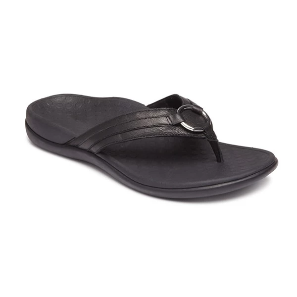 Islander Aloe features soft leather uppers with a striking O-ring embellishment which adds a touch of class to any outfit. Vionic biomechanical orthotic footbed is contoured to provide support and natural alignment of the feet and lower body. Durable rubber outsole.