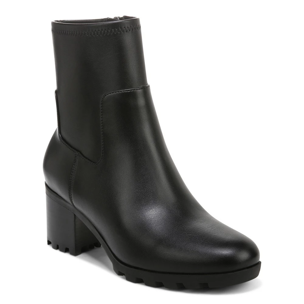 A stylish lug heeled biker boot, with a soft premium synthetic upper that benefits from its leather-like feel and stretch around the top for easier access and allows for heavier garments.